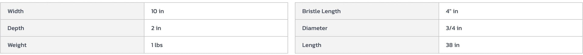 - Firm, flexible, stapled polymer fibers with a 10" wide sweeping surface.