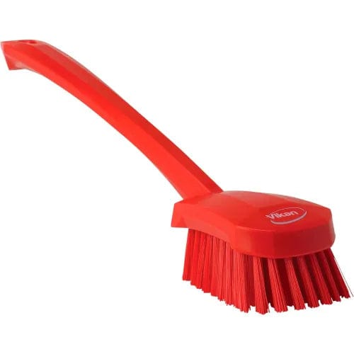 The long handled wash brush allows you to reach into parts of equipment that are hard to access. The angled bristles are stiff, helping to scrub at a distance.