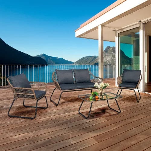 Lugano 4 Piece Rattan Outdoor Sofa Seating Set w/ Cushions