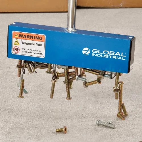 Magnetic nail sweepers pick up nails and other debris off the floor. Simple-to-use magnetic sweepers automatically pick up steel objects to provide an alternative solution to brush sweepers, vacuums and power sweepers. Not affected by rain, dust or temperature. Can be used over asphalt, concrete, grass and gravel. Load release nail sweepers feature a long handle and load release for ease of use. Internal magnet assembly is housed in heavy 1-1/2" x 3" steel. 1 Year Limited Warranty.