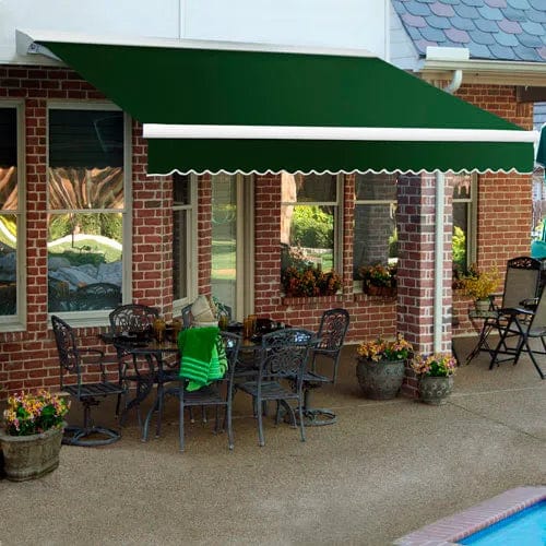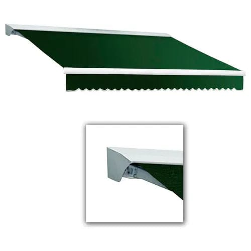 Destin-LX (A Beauty-Mark brand heavy duty retractable awning with aluminum protective hood by Awntech). The heavy duty, energy saving Destin-LX is a retractable awning with aluminum protective hood that comes in manual or otorized with remote option versions. It is a heavy duty awning with powder coated in white. The available sizes are starting 8 ft. wide up to 24 ft. wide with 7 ft. projection up to 10 ft. standard projection with optional 11.5 ft. and 12 ft. projection for 14 ft. wide and larger models. The fabrics are 100% solution dyed acrylic and available in many solid and striped patterns to choose from. The valance can be removed and stored in the winter. It will turn your outdoor living space into a personal retreat in the summer and retract for the warmth of the sun in the winter. This awning is designed for wall mount only. Some accessories that may be purchased in addition to your awning are winter cover, wind sensor, breeze supports and more. Enjoy your summer/outdoors without fear of getting sun burn and turn the outdoors in to party atmosphere.