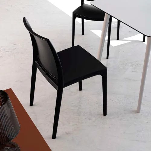 Maya indoor outdoor dining chair. Made from commercial grade resin with gas injection molded legs. Preferred by restaurants, cafes and hotels. Extremely durable for outdoor temperatures. Easy cleaning. Perfect for heavy use indoor outdoor areas. No Assembly Required.