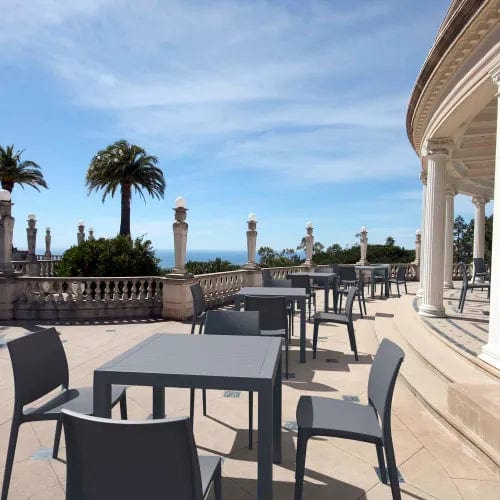 Maya indoor outdoor dining chair. Made from commercial grade resin with gas injection molded legs. Preferred by restaurants, cafes and hotels. Extremely durable for outdoor temperatures. Easy cleaning. Perfect for heavy use indoor outdoor areas. No Assembly Required.
