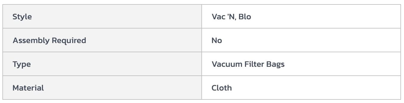 Fits both Model 378217 and 378210 vacuums. Paper collection bags also available. Made in the USA.