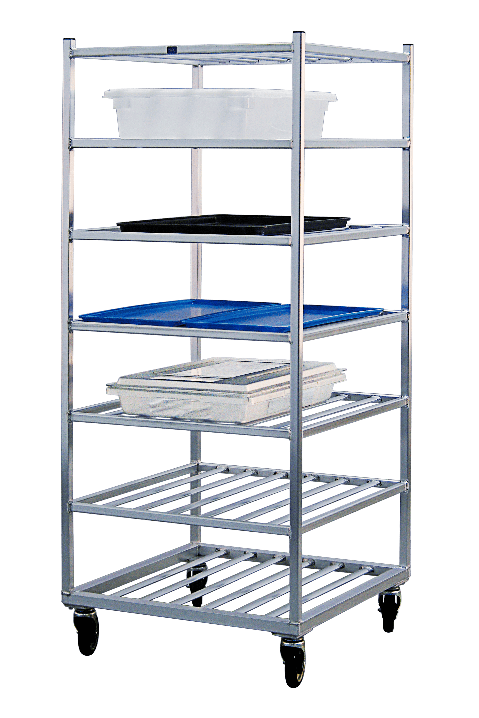 Heavy Duty Universal Carts are supreme, multi-purpose carts used for transporting various sizes of platters, trays, boxes, and lugs. These all-welded carts are used in all departments of supermarkets including produce, bakery, meat, and deli. Rounded bar-style channels provide easy on, easy off product access from the front, back, or either side of the units. They are easy to maneuver, utilizing four swivel casters.