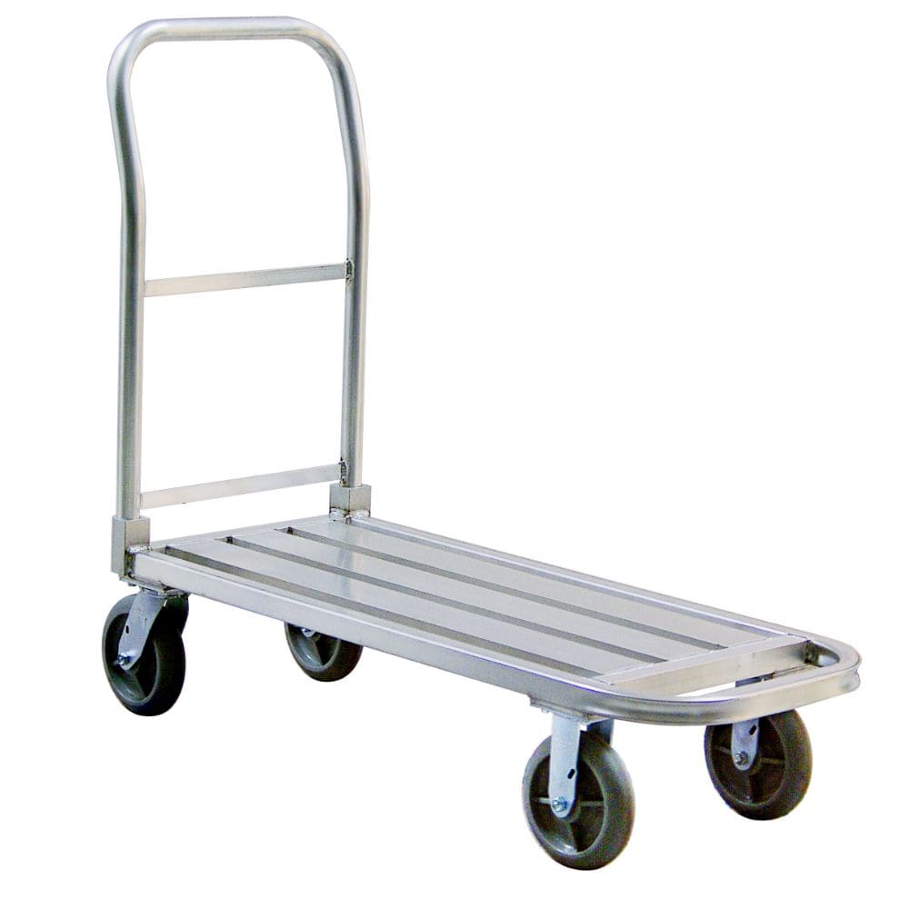 Centerline Dynamics New Age Industrial Trucks New Age Industrial U-Shaped Platform Truck, All Aluminum, Round Nose, 8" x 2" Plate Type Casters, Removable Handle, 2000 LB Capacity, 48"L x 20"W x 44.5"H 99321