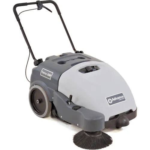 Superior Productivity for Hard and Soft Floors The Terra® 28B walk-behind floor sweeper leaves wide-area vacuums in the dust. With its 28" sweep path and specially designed main broom, you can clean up to 20,000 sq. ft. of carpet per hour (versus 8,000 sq. ft. per hour for a 28" vacuum). Benefits of Terra 28B Walk-Behind Sweepers The Terra 28B delivers superior efficiency and performance. Featuring All Surface, All Purpose sweeping technology, you can clean from one floor type to another without changing the broom. In most situations you won't even have to adjust the broom height. With low sound levels and easy maneuverability, this is an ideal sweeping and vacuuming solution.