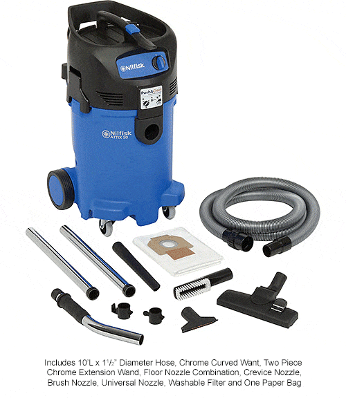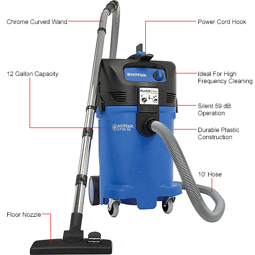 Nilfisk Attix 50 Wet/Dry Vacuum, 12 Gallon Cap.