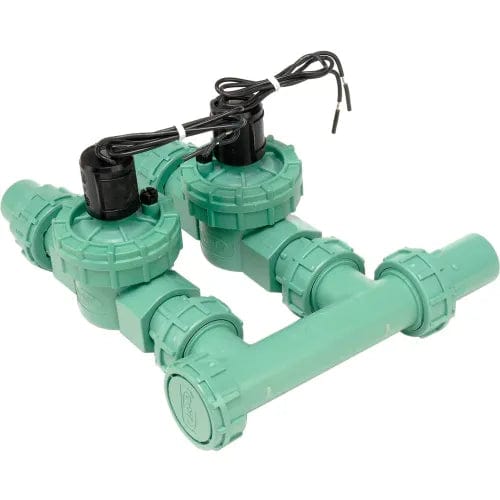 The Preassembled Manifold provides the most complete, reliable, and easy method to install multi-valve systems. This system works with both 3/4 and 1 in. systems. Included is our jar-top valves for easy valve maintenance. The Easy Wire system simplifies the wiring connection when attaching the valve to the timer. The preassembled manifold is durable, built with high impact UV resistant construction. Features 2 Valves. Installs in minutes by hand tightening; no tools required. Controls water flow for 3 sprinkler lines. Works with PVC and poly pipe systems; adapters for 3/4 In. and 1 In. PVC pipe included. Easy Wire for simplified wiring. Works with most existing sprinkler systems. Durable UV resistant and high-impact construction. Includes Jar-top valve. For outdoor use with cold water only.