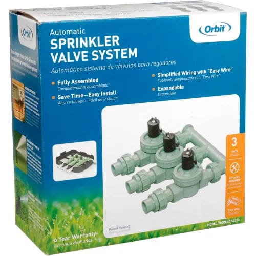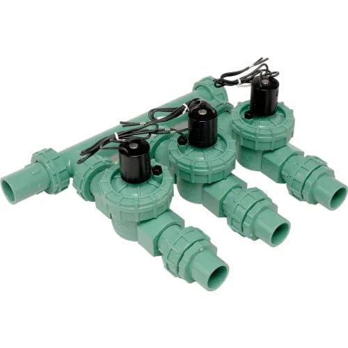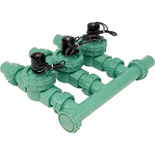The Preassembled Manifold provides the most complete, reliable, and easy method to install multi-valve systems. This system works with both 3/4 and 1 in. systems. Included are our jar-top valves for easy valve maintenance. The Easy Wire system simplifies the wiring connection when attaching the valve to the timer. The preassembled manifold is durable, built with high impact UV resistant construction. Features 3 Valves. Installs in minutes by hand tightening; no tools required. Controls water flow for 3 sprinkler lines. Works with PVC and poly pipe systems; adapters for 3/4 In. and 1 In. PVC pipe included. Easy Wire for simplified wiring. Works with most existing sprinkler systems. Durable UV resistant and high-impact construction. Includes Jar-top valve. For outdoor use with cold water only.