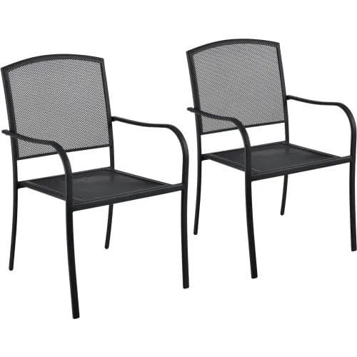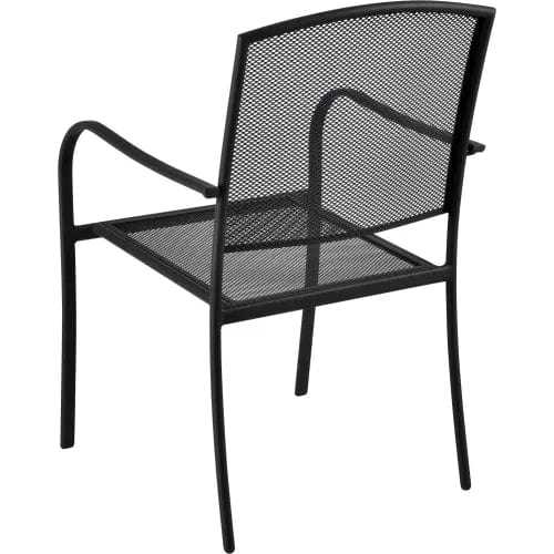 - Outdoor Café Stacking Armchair, Steel Mesh, Black, 2 Pack