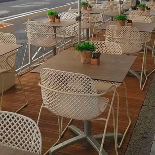 Our successful retro design from the 1970's recreated for today's trends! It features a comfortable resin back and seat combined with the strength of powder-coated steel legs for years of use - indoors or out!