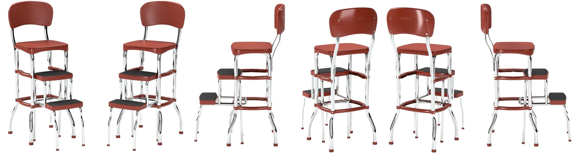 - Retro Counter Chair/Step Stool, Sliding, Red