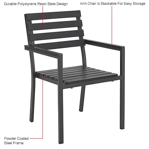 Centerline Dynamics Outdoor Seating Stackable Outdoor Dining Arm Chair, Black, 4 Pack