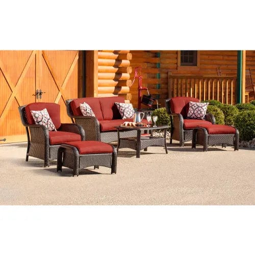Centerline Dynamics Outdoor Seating Strathmere 6 Piece Wicker Patio Set, Crimson Red