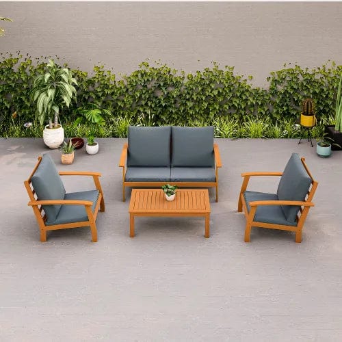 - Truwood FSC Wood 4 Piece Patio Set with Gray Cushions