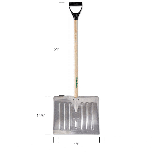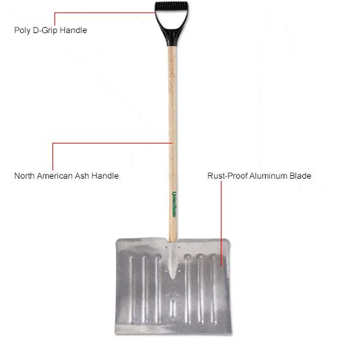 This aluminum shovel is a must-have! It's a classic snow shovel with a sturdy D-grip handle. The aluminum blade is rust-proof, durable, and much lighter than a steel blade. Features an 18-inch aluminum blade, Strong poly D-grip, and North American ash handle for strength and durability.