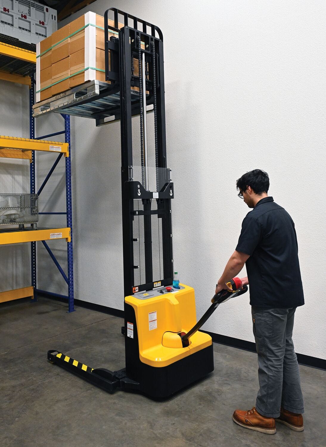 Centerline Dynamics Stackers Vestil Steel Adjustable Double Mast Stacker 118 In. Raised Height Variable Speed 2200 Lb. Capacity