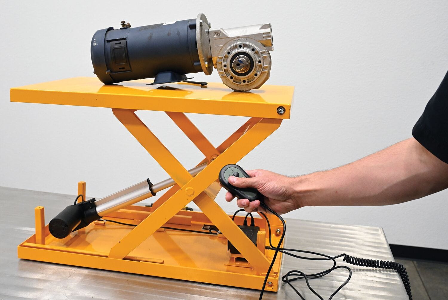 With user well-being always at the forefront of everyone's mind, the linear actuated lift table provides an ergonomically friendly option in an otherwise UN-ergonomic world. Due to its small size and lightweight structure the lift table works well when placed directly onto existing work benches or tables. This addition allows the user to work on small, heavy objects, at precise heights. The linear actuator not only plays an integral role in raising and lowering the table top quickly and efficiently. But, it also minimizes any platform drift, which is a common occurrence with standard hydraulic carts and tables. The unique open sided table design lets the user load and unload products without obstruction or hindrance.