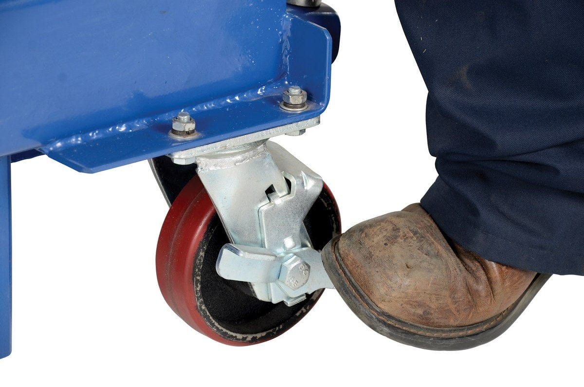 - Unit rolls smoothly on two rigid and two swivel with side brake casters standard