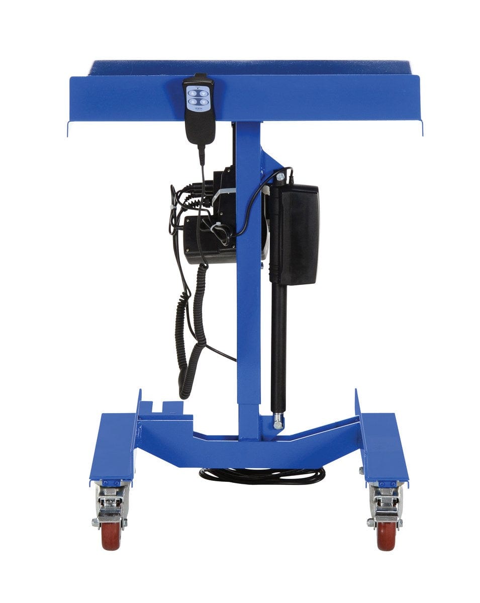 The mobile tilting work table is designed to bring work to an ergonomically correct position, helping to foster more comfortable and productive work environment. Working in a comfortable position also reduces fatigue and risk of injuries. The platform height and tilt angle are powered by an electric linear actuator with a hand control. The polyurethane swivel casters (two double locking) allow unit to be transported from one work area to another while loaded.
