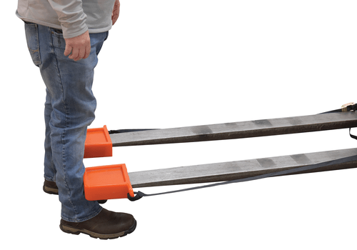 The fork tip protector is a quick and easy way to make forks safer in a variety of work environments. A durable construction is lightweight and compact for simple storage when not in use. The included nylon strap allows the user to secure the protector in place, for limited jostling during movement. Units are available in a thick and thin outer shell design. Fork tip protectors are sold in pairs.