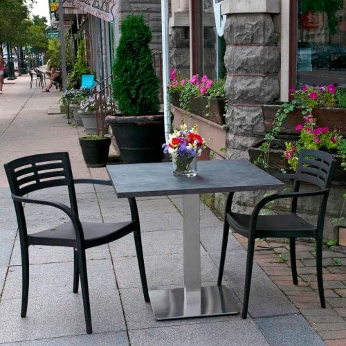 Vogue style is a step above other outdoor restaurant chairs, with its simple, sophisticated silhouette and slim, fluid design. The clean lines coordinate perfectly with many Grosfillex® tables and bases, and comfort is second to none thanks to the Vogue's stable armrests, contoured back for optimal support and stay-cool material. This sturdy armchair is lightweight and stackable up to 8 high for storage. It is 100% recyclable and guaranteed for 3 years.