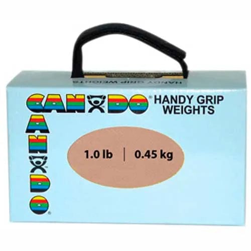 CanDo® Handy Grip™ weight ball offers all the benefits of traditional weight training without using hard-to-hold metal dumbbells. Ergonomic shape makes for easy grasping and textured surface makes it slip-free. Strap ball to hand for added security and for firmer grasp. The strap is adjustable to fit most users. Football shape design with hand strap enables a variety of strength training and functional movements. Available in 6 color-coded weight levels. CanDo® Handy Grip™ Weight Ball - 1 lb - Tan.