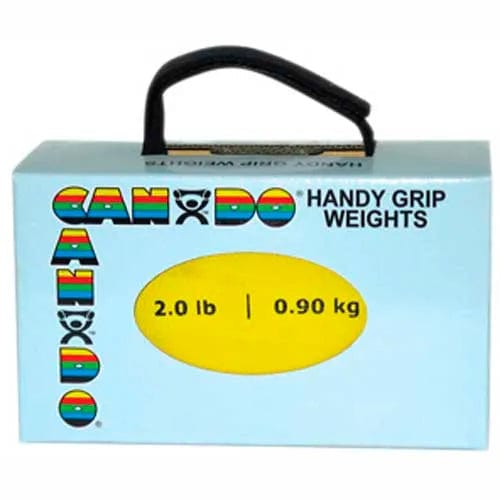 CanDo® Handy Grip™ weight ball offers all the benefits of traditional weight training without using hard-to-hold metal dumbbells. Ergonomic shape makes for easy grasping and textured surface makes it slip-free. Strap ball to hand for added security and for firmer grasp. The strap is adjustable to fit most users. Football shape design with hand strap enables a variety of strength training and functional movements. Available in 6 color-coded weight levels. CanDo® Handy Grip™ Weight Ball - 2 lb. - Yellow.