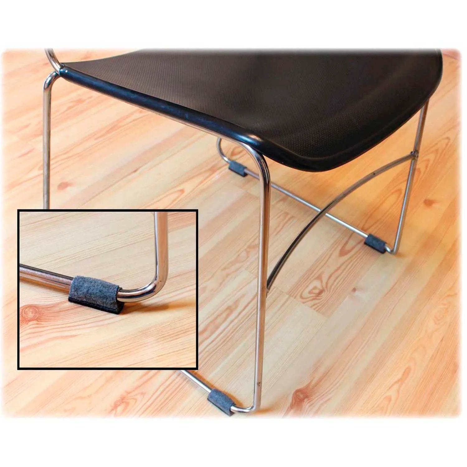 Wraparound Floor Savers provide floor protection for chairs with sled bases. Not only do the floor savers protect floor surfaces from scratches and rust stains, but they also dramatically reduce noise and are extremely durable. Apply easily with the peel-and-stick application. Pads stick tight. Wraparound Floor Savers conform to the base rail for a perfect fit, and wings attach to themselves for long-lasting hold. Formed sides and stress-relieving design ensure the pad will stay on. The vinyl wear cushion distributes weight, and the casing allows less wear to the pad and floor. Floor Savers are recommended for most size rails and can be applied directly to rail or over existing glide of a sled-base chair, stackable chair, music stand, bookcase, desk and more. Use on hardwood floors, VCT, vinyl, linoleum, finished concrete and ceramic tile floors.